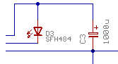 C3 mit seinen 1000µF liefert für kurze Zeit den benötigten Strom. Er wird in den Schußpausen über R5 wieder