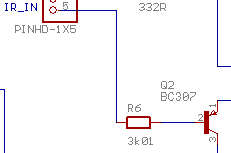Weil die Infrarotdetektoren mit 5V betrieben werden und Open-Kollektorausgänge besitzen, werden sie über Q2 und R6 an