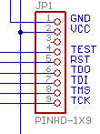 Um Platz zu sparen habe ich nicht die Standardbelegung des 2x7-poligen Steckers von TI benutzt, sondern nur einen