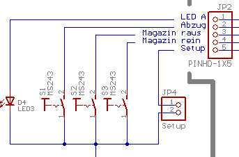 Genau genommen ist diese einfache Schaltung nicht bei allen Exemplaren gleich. Durch die relativ große Schwankung der MSP-internen Spannungsreferenz weichen die Schaltschwellen der einzelnen Pistolen voneinander ab. Wenn man dies vermeiden möchte, muß man für jede Pistole individuell z.B. Widerstand R8 anpassen. Ich habe mir das geschenkt und lebe mit der möglichen Ungerechtigkeit.