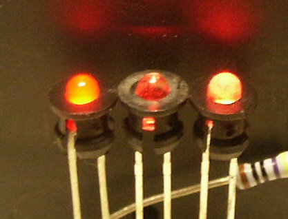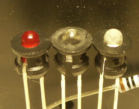 Um eine klare LED auch als Indikator zu benutzen, muß man ihre Vorderseite nur mit feinem Sandpapier aufrauhen. Dadurch wird das Licht der LED auch von der Seite gut sichtbar.